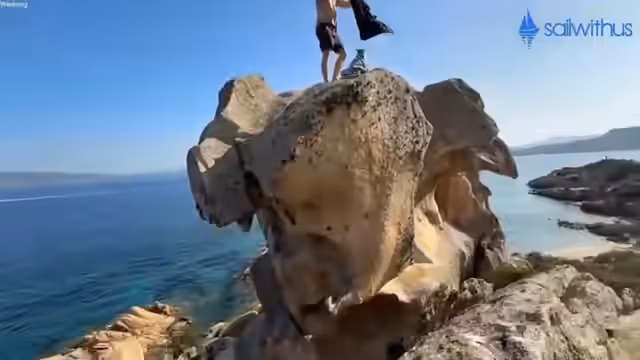 05:19:25Zu Beginn des Segeltages klettert der Streamer auf Felsen und vergleicht das mit einem Spiel. Er fordert einen Begleiter auf, ihm zu folgen und betont, dass Klettern Spaß mache. Es werden die Klettertechnik und der richtige Griff an den Steinen besprochen. Der Streamer ist euphorisch und vergleicht das Klettern mit dem Affen sein, was den hohen Spaßfaktor für die Gruppe unterstreicht.