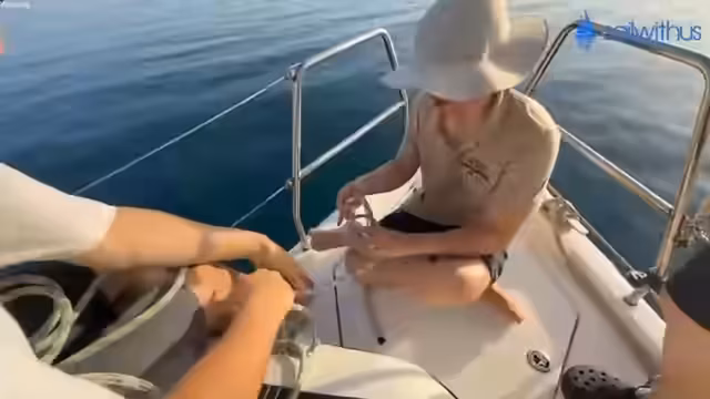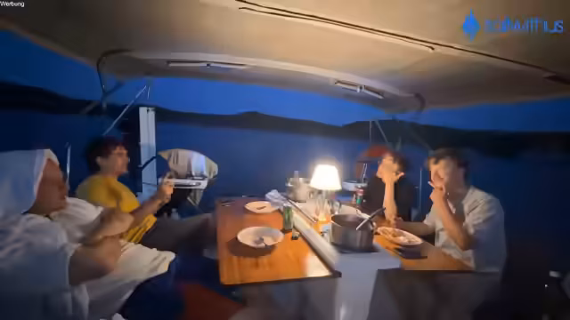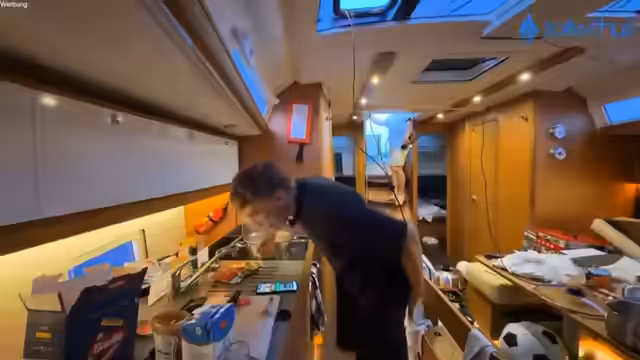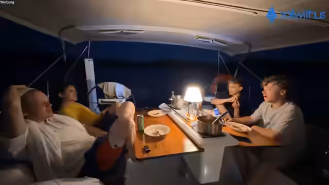 07:20:58Nach der erfolgreichen Rettung ankert das Team das Boot in der Nähe von Frankie, um die Nacht zu verbringen. Es wird über die Kühlung des Bootes gesprochen, da es sich wie eine Sauna anfühlt. Julian zeigt, wie man das Boot richtig an einer Boje festmacht, nachdem es zuvor Probleme gab. Die Diskussionen drehen sich um das Anker- und Festmachen, bevor die Crew sich auf die Essensvorbereitung konzentriert. Die Zeit drängt, und es wird über den weiteren Tagesverlauf entschieden.