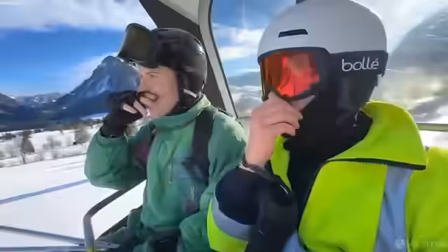 00:40:42Es wird festgestellt, dass es windig ist und Danny als privater Ski-Coach und IRL-Streamer vorgestellt wird, der für seine krassen Aktionen bekannt ist und bereits zweimal für den Most Surreal Moment bei den Stream Awards nominiert wurde. Der Streamer beschreibt Danny als Abenteurer und Vorbild und betont, dass es sich lohnt, bei ihm vorbeizuschauen, auch wenn man dafür österreichisch lernen muss. Er scherzt, dass er die Sachen, die Danny macht, in drei Jahren auch machen wird. Der Streamer bittet Danny, sich ein wenig gegen ihn zu lehnen, da sie fast oben sind. Er erinnert sich daran, das Mikrofon rauszuholen und bittet Danny, seinen Rucksack zuzumachen. Es wird ein Clip von einer Oma in Irland erwähnt, die eine Latzhose zumacht. Der Streamer verbindet sich kabellos mit Dannys Mikrofon und verstaut es in seiner Jackentasche. Es wird nach der Tonqualität gefragt. Danny gibt bereits erste Lektionen und weist darauf hin, dass der Körper nicht so stark gedreht werden soll, sondern mehr mit Hüfte und Beinen gearbeitet werden soll.