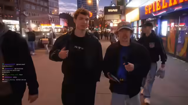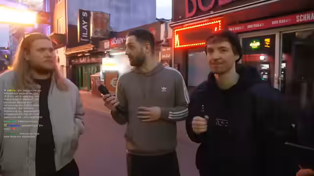 01:58:20Nach einer kurzen Pause geht die Spaziergangsrunde durch St. Pauli weiter. Sie erreichen die berühmte Reeperbahn und unterhalten sich über ihre Entstehungsgeschichte. Ein Fun Fact aus dem Chat belehrt die Streamer: Die Reeperbahn hat ihren Ursprung im Jahr 1626, als sich Reepschläger und Seiler ansiedelten. Sie erkunden die Gegend, unter anderem die „Große Freiheit“, wo einst die Beatles ihr erstes Deutschlandkonzert gegeben haben. Die Streamer erinnern sich an vergangene Konzerte in Hamburg und eine Anekdote aus den Lochis-Zeiten, bei der einer von ihnen den „Turbus“ gekotzt hat.
