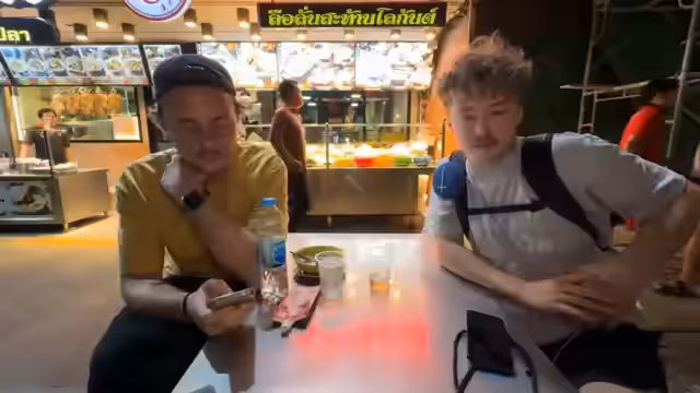 05:24:05Nach dem deftigen Abendessen wird ein traditioneller thailändischer Nachtisch gesucht. Bevor sie diesen erreichen, stoßen sie auf ein spontanes Spieleparadies, das Airhockey, Boxautomaten und Roboter-Kämpfe anbietet. Auch Fortnite wird gesichtet. Der Streamer ist von der Idee eines „Diggerland“-ähnlichen Vergnügungsparks für Erwachsene in Deutschland begeistert. Der Abend schließt mit einer weiteren Suche nach einem Nachtischartikel ab, wobei sie auf einen Laden mit exotischen Produkten wie Schwalbennest-Suppe treffen, der seine Neugier weckt, aber auch ein Gefühl von Übelkeit auslöst.