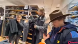 01:59:38Die Gruppe erreicht den Levi's Store und betritt ihn. Ronny lässt sich intensiv beraten und steht offenbar vor der Entscheidung zwischen einer grauen und einer dunkelblauen Jeans. Währenddessen zieht Jonny weitere Kleidungsstücke aus seiner Shopping-Tasche hervor, darunter ein weißes Hemd, einen Schlips und Jacken. Es scheint eine Art Wettbewerb unter den Begleitern zu geben, wer als Erster sein Outfit komplett hat. Ronny erwähnt im Gespräch mit dem Verkäufer, dass er nur einen Gürtel auswählen wollte, aber durch ein Sonderangebot von 20% Rabatt auf einen Gürtel beim Kauf einer Hose wahrscheinlich doch beide Artikel kaufen wird, was seine Entscheidung erleichtert.