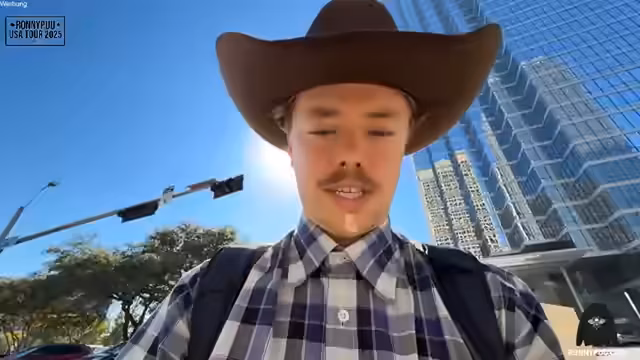 00:07:36Der Streamer kündigt eine zweiwöchige Reise durch Texas an, die mit einem Besuch der TwitchCon in San Diego endet. Um sich in Texas einzufinden, plant er, ein typisches Cowboy-Outfit zu tragen. Er erwähnt seinen Traum von Cowboy-Stiefeln und einem Hut, zeigt eine volle Tasche mit diversen Ausrüstungsgegenständen und stellt seine Begleiterin Isa vor.