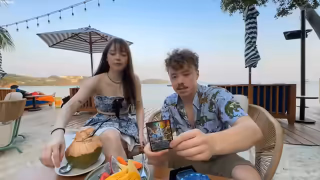 01:54:42Der Stream unterbricht das Magic-Thema, um spontane Kontakte am Strand in Thailand zu dokumentieren. Er unterhält sich mit Alena, einer Künstlerin und Schmuckdesignerin aus Russland, die derzeit auf Bali lebt und eine spezielle Visa-Regulierung in Thailand nutzt. Sie erzählt von ihren Arbeiten und ihrem Online-Shop auf Instagram. Der Streamer hilft ihr bei der Frage nach internationalen Versandoptionen für ihre Schmuckstücke, indem er auf Dienstleister wie FedEx oder Postdienstleister verweist.