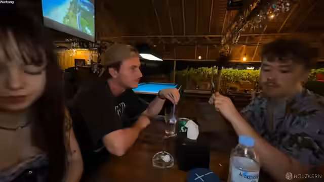 00:06:04Der Stream beginnt am Strand in Thailand mit einer Vorstellung des gesamten Setups. Der Streamer präsentiert den Meereshintergrund, erwähnt die Anwesenheit von Meli, Baki und Luise und erklärt, dass ursprünglich kein Stream geplant war, da der erste Tag als Ruhetag gedacht war. Nachdem man sich jedoch am Strand entspannt hat und schwimmen war, wurde beschlossen, einen spontanen Stream zu machen. Die Atmosphäre ist entspannt und die Freude über die Lage am Strand ist spürbar. Ein Junggesellenabschied mit Feuerspuckern wird als erwähnenswerte Besonderheit des Vorabends beschrieben.