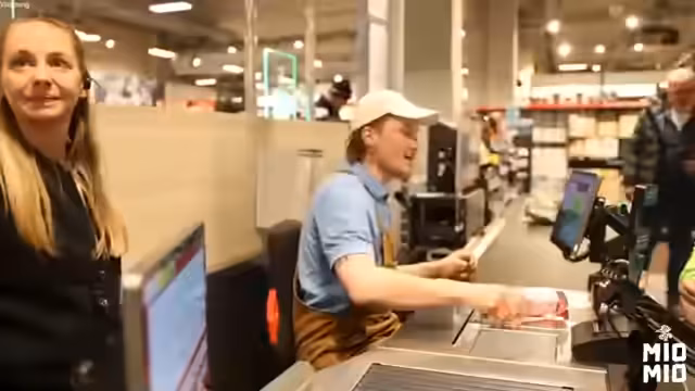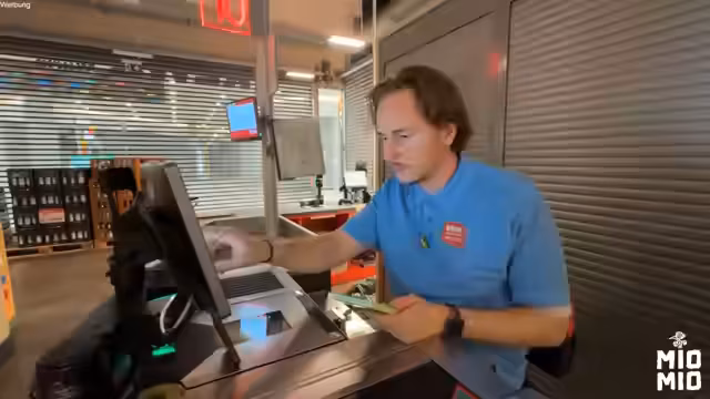 03:01:49Nach der theoretischen Schulung beginnt der praktische Kassierbetrieb. Der erste Streamer, Paco, nimmt die Kasse unter den Augen der Zuschauer. Die erste Interaktion mit einem echten Kunden verläuft holprig, da die Prozedur wie Artikel scannen, Fragen nach dem Bonus stellen und Bezahlung abwickeln für die Beteiligten neu ist. Es folgen weitere Kassierer, die ebenfalls einige Schwierigkeiten haben, wie etwa bei der Produktsuche oder der korrekten Handhabung von Karten. Der Druck, alles perfekt zu machen, und die Aufregung der Live-Atmosphäre werden als besondere Herausforderung beschrieben.