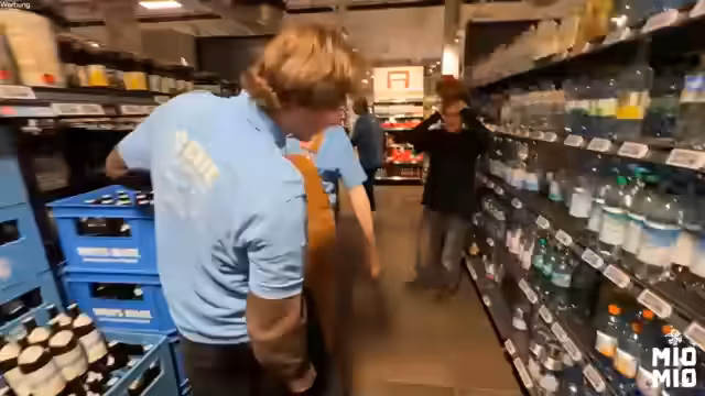 06:17:28Nach einer kurzen Unterbrechung kehrt der Streamer mit dem Kameramann zurück in den Supermarkt. Sie stellen fest, dass das Team bereits fleißig war und die angelieferte Ware abgemacht und sortiert hat. Das Ziel ist es, die neuen Schilder für Mio Mio an den Produkten anzubringen. Dabei werden Produkte wie Lipton Sparkling Zero und Fused Tea entdeckt. Es wird eine Verwechslung mit dem Pfand von Glasflaschen diskutiert und es wird eine Herausforderung gestartet, wer mehr falsch eingerollte Produkte findet.