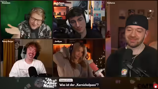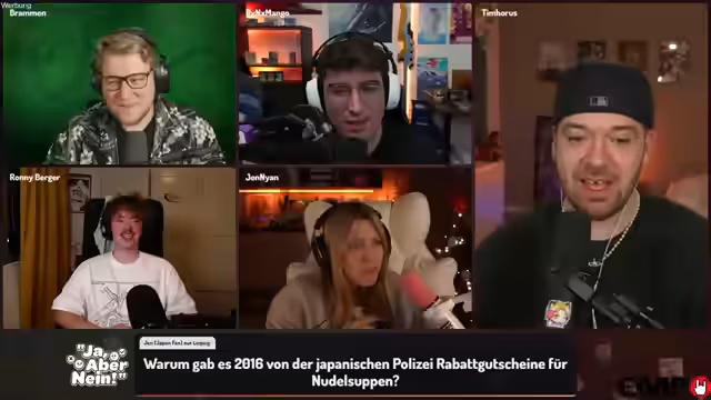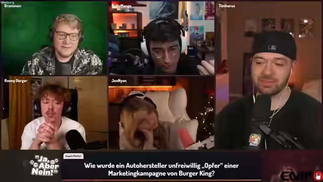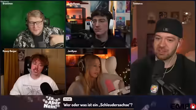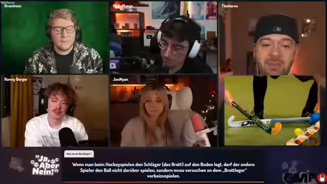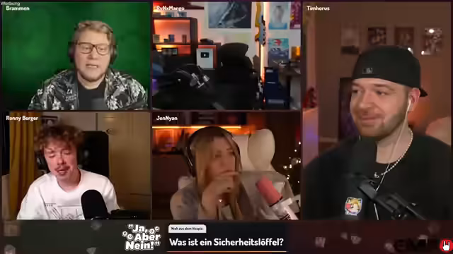 02:32:21Ronny Berger stellt ein neues Koop-Game vor, bei dem absurde Fragen gestellt und gemeinsam Lösungen erarbeitet werden sollen. Brammen von PeteSmeet, Mango und Jen-Jan sind als Gäste anwesend, während Ronny Berger zum ersten Mal dabei ist. Das Spielprinzip basiert auf spontanen Ideen und Teamarbeit, wobei das Ziel ist, durch gemeinsame Diskussionen die richtigen Antworten auf absurde Fragen zu finden. Die Teilnehmer werden eingeladen, direkt in die Runde zu werfen und dynamisch zu interagieren, während Ronny als Spielleiter agiert.