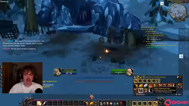 07:27:44Die Gruppe konfrontiert den Elite-Mob 'Eisbott, der Alte', scheitert aber an dessen Stärke und Distanzmechaniken. Durch Lurer-Taktiken (Locken des Mobs) und Koordination versuchen sie, die Quest zu absolvieren, wobei Fehler wie falsche Heilungen zu Todesszenarien führen. Ronny reflektiert, dass solche Erlebnisse zum Lernen dienen, und plant, die Strategie für zukünftige Raids anzupassen. Dies zeigt die Herausforderungen des Hardcore-Modus und die Bedeutung von Gruppenkoordination.