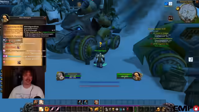06:39:51Der Streamer spielt nun mit Jonsmann zusammen und jagt weitere Wendigos. Raids von Zuschauern (z. B. 'Sieglinde' und 'Leia') werden integriert, und Loot-Einstellungen (gemeinsames Verteilen) werden erklärt. Diskutiert wird die Gefahr durch respawnende Mobs und die Bedeutung von Buff-Überwachung. Ressourcen wie Rhapsody Malzbier werden für Quests beschafft. Die Gruppe betont den Spaß am gemeinsamen Erlebnis und plant, durch Clips positive Momente zu teilen.