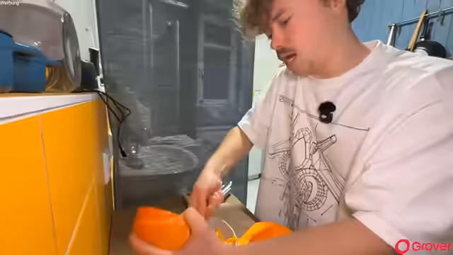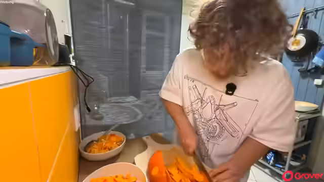 01:10:03Ronny beginnt mit der Zubereitung eines Kürbisses und überlegt Rezepte. Da kein Risotto-Reis verfügbar ist, entscheidet er sich für ein experimentelles Flow-Cooking-Verfahren mit Jasmin-Reis. Er schneidet den Kürbis in Würfel, würzt ihn mit Ingwer, Muskatnuss und Salz und röstet ihn im Ofen. Parallel diskutiert er Titeländerungen des Streams und stellt das Konzept des 'Art-Cooking' vor, bei dem er spontan kocht wie ein Künstler.