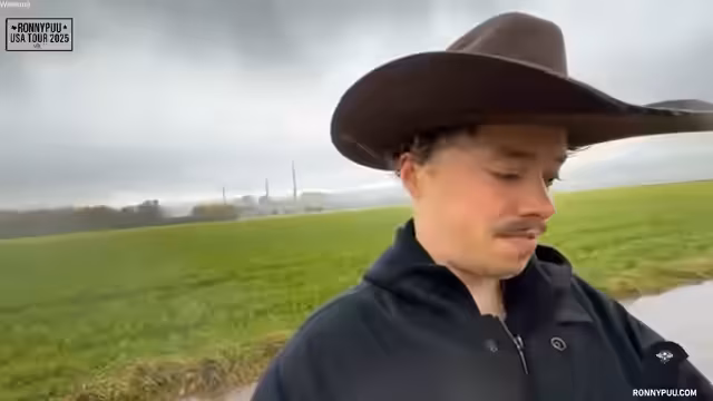 00:00:00Ronny Berger ist von den USA zurück in Deutschland, nachdem er bis 6 Uhr morgens wach war wegen Jetlag. Er ist mit dem Auto nach Grundremmingen gefahren, hat aber 35 Minuten entfernt geparkt und ist zu Fuß zum Atomkraftwerk gelaufen. Er hat Equipment wie eine Powerstation, Starlink für Internet und einen Regenschirm dabei, um das Event live zu streamen und die perfekte Perspektive für den Stream zu finden.