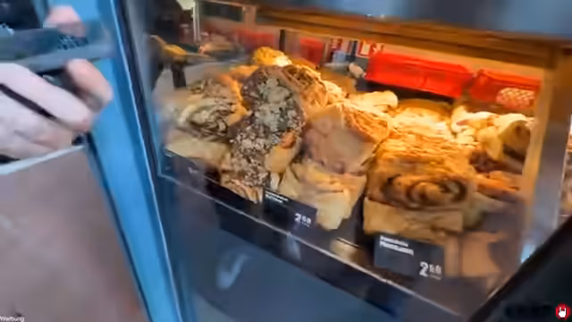 00:02:40Nach der Ankunft und kurzen Unterhaltung geht es zur ersten Station, Franz & Friends am Hamburger Hauptbahnhof. Bevor sie den Laden betreten, unterhalten sie sich über die Besonderheiten des Bahnhofs und die dortige Hochbahnwache. Im Laden angekommen, wird deutlich, dass es sich um einen Spezialisten für Franzbrötchen handelt, der ausschließlich verschiedene Varianten davon verkauft. Beide äußern hohe Erwartungen, da der Laden sich rein auf dieses Produkt konzentriert.