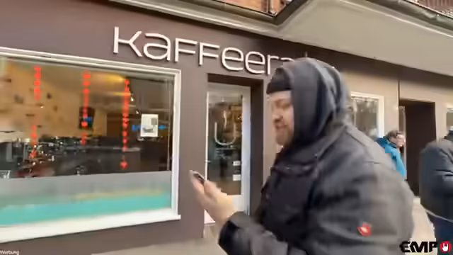01:41:05Ronny und sein Begleiter erreichen ihr nächstes Ziel, das Café Luise. Sie machen sich einen ersten Eindruck vom Laden und stellen fest, dass dieser derzeit leergeräumt zu sein scheint. Die Schaufenster zeigen künstlich generierte Bilder (AI-Bilder). Ronny zeigt sich überrascht von dem Angebot, das neben Backwaren auch ungewöhnliche Artikel wie Geschenkbänder, Bücher und sogar eine Barista-Schule umfasst und stellt sich die Frage nach der Zukunft des Ladens.