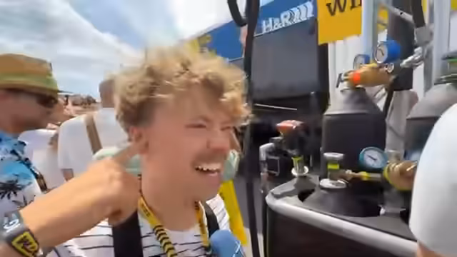02:32:13Das Rennen hinter dem Safety Car neu gestartet. Der Streamer ist von der Power der Motoren begeistert und beschreibt die aufregende Atmosphäre. Nach einigen Runden verlässt der Streamer die Rennstrecke, um das Festivalgelände zu erkunden. Er findet dort Stände mit Essen und Probiermöglichkeiten, lobt die Trüffelsoße und die allgemeine Festival-Stimmung. Die Verpflegung gibt ihm neue Energie, um den weiteren Verlauf des Rennens und des Events zu begleiten.