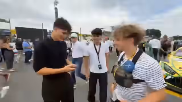 00:32:34Während des Durchlaufs der Boxengasse wird der bekannte DTM-Fahrer und Twitch-Streamer René Rast gesichtet. Der Streamer ist begeistert, diesen persönlich zu treffen, da Rast als sein Twitch-Vorbild gilt. Es gelingt, ihn anzusprechen, ein Foto zu machen und ihm für den Stream ein Autogramm zu geben. Das Treffen wird als ein Traum in Erfüllung beschrieben und der Streamer bewundert die dreimalige Meisterschaft von René Rast.