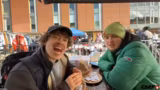 01:53:33Ein neues und ungewöhnliches Thema ist der Verkauf von Lebensmitteln, darunter abgelaufene Schokolade und Prinz-Polo-Riegel aus Polen. Der Streamer stellt kritische Fragen zur Lebensmittel-Lizenz und zur Haltbarkeit. Einen Höhepunkt bildet die spontane Einladung eines Standbetreibers, der den Streamer mit seinem Kamerateam zu seinem Sohn-Geburtstag einlädt und verspricht, für Döner zu spendieren.