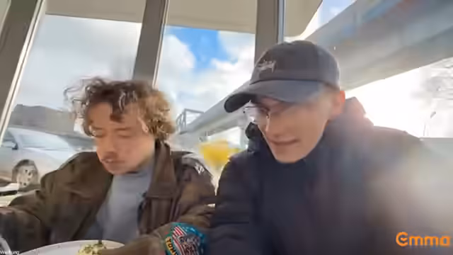 01:40:06Nachdem technische Probleme gelöst sind und die Fahrt beginnt, erreichen die Streamer ihr Ziel: ein Café in der Nähe des Hamburger Flughafens. Es wird der Blick auf die Landebahn freigegeben und die anfängliche Begeisterung über die Nähe zu den startenden und landenden Flugzeugen wird geteilt. Die Vorbereitungen werden getroffen, um das Planespotting live zu streamen und mit den Zuschauern zu interagieren.
