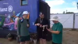 01:44:00Nach dem Spiel startet die offizielle 'Trader Challenge' in Kooperation mit Allianz. Das Ziel ist es, einen anfänglichen Gegenstand, ein Ringlicht fürs Handy, bis 16 Uhr durch Tausch mit Festivalbesuchern in etwas noch Wertvolleres zu verwandeln. Zunächst wird die Besonderheit der Challenge erläutert. Zabex und Mali haben geheime Aufgaben, die mit den gefundenen Gegenständen unterstützt werden sollen. Man versucht den Anfang mit dem Ringlicht zu machen und sucht nach ersten Tauschpartnern.