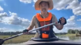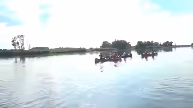 01:18:04Während der Fahrt durch ein Naturschutzgebiet werden die ersten spektakulären Naturmomente festgehalten. Eine große Anzahl an Gänsen beobachtet die Gruppe, kurz bevor sie von Jetskis passiert und von deren Wellen überrascht werden. Es kommt zu witzigen Momenten, bei denen sich die Boote ineinander verknoten und auch kleine Tierunfälle, wie Bisse von Bremsen, für Unterhaltung sorgen. Das Erlebnis wird als filmhaft und aufregend beschrieben.