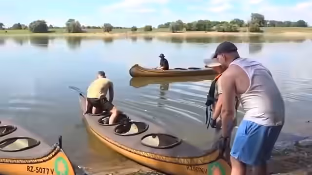 00:05:40Die große Kanu Tour von Gorben nach Hamburg beginnt mit optimistischer Stimmung, auch wenn Wetterwarnungen für die kommenden Tage bestehen. Die Gruppe, bestehend aus Streamern wie Trymacs und Ronny Berger, ist noch ohne nennenswerte Kanu-Erfahrung und muss sich erst mit der Ausrüstung vertraut machen. Dies umfasst das Anlegen von Schwimmwesten und Helmen, das Verteilen von Paddeln und das Verständnis der Sicherheitsvorkehrungen, wie z.B. die mitgeführte Wasserkelle zum Beseitigen von Leckwasser.