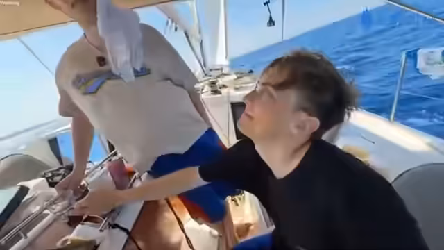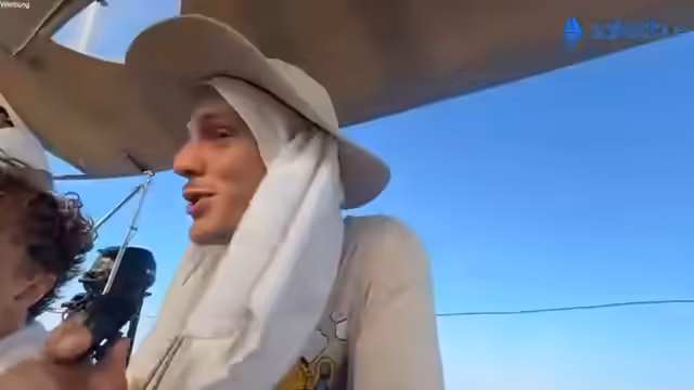 02:39:17Der Streamer ruft im Chat die 'Ravioli Piraten' auf und beschreibt, warum die Flagge nicht im Wind weht, da sie vom Segelschatten abgedeckt ist. Anschließend wird eine spontane Aktion gestartet: Julian springt als 'Mann über Bord' ins Wasser. Das Boot wird daraufhin gelenkt, um die Person zu retten. Ein Rettungsmanöver wird erfolgreich durchgeführt und der 'Gefangene' wird zurück an Bord geholt.