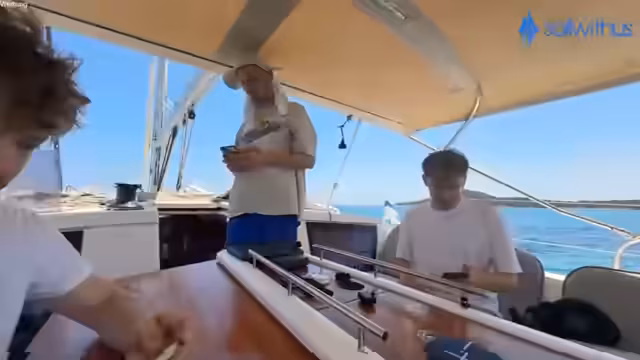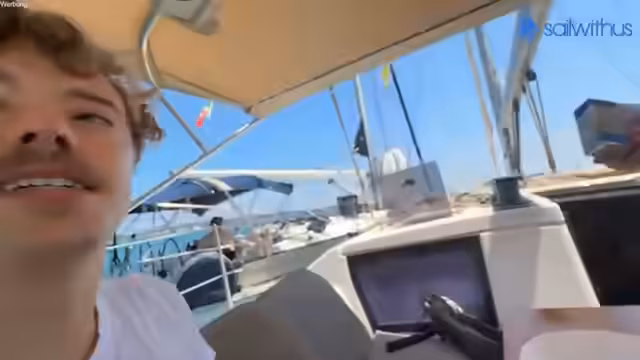 07:28:46Der Streamer führt ein komplexes Ankermanöver durch, um das Schiff in einer beengten Bucht zwischen anderen, teureren Booten zu positionieren. Die Situation ist risikoreich, da die Ankerkette nicht markiert ist und die Gefahr besteht, andere Schiffe zu stören oder zu beschädigen. Nach mehreren Versuchen und einer Überhitzung der Ankerwinch wird eine neue Position hinter den Katamaranen gesucht, um sicheres Ankern zu gewährleisten.