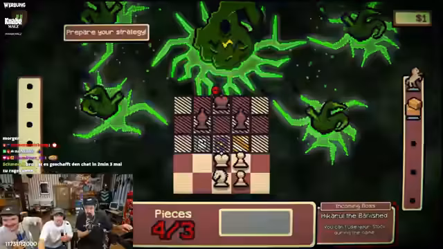 05:58:13Ronny erreicht das Endspiel mit einer überlegenen Position. Er hat mehrere Damen (Queens) und dominiert das Brett. Sein Gegner ist weitgehend handlungsunfähig. Ronny feiert seinen Sieg und ruft: 'Ich gewinne! Föhr! GG!' Der Kommentator lobt seinen Sieg und nennt es 'Klaps and Shads'. Ronny ist offensichtlich stolz auf seinen Sieg und sagt: 'Ich war nicht traut! Ich schwöre!' Er promotet weiterhin das Spiel 'Gambo Lanza' und bittet die Zuschauer, es zu wishlisten.