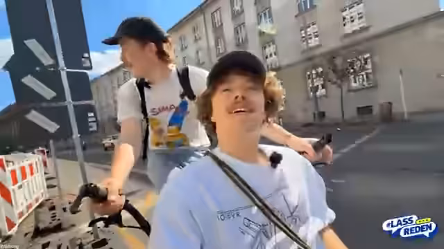 00:12:11Der Streamer und sein Partner führen auf dem Tandemfahrt Straßeninterviews durch und sprechen mit Passanten über die EU. Es gibt positive Rückmeldungen zur EU, wie die gemeinsamen Regeln und Reisefreiheit, aber auch kritische Punkte wie die Streusalz-Verordnung und mangelnde Sichtbarkeit der EU-Politik. Die Interviews sind Teil der Initiative Lass Reden der EU-Kommission, die Meinungen von jungen Leuten zur zukünftigen Entwicklung der EU sammeln soll.