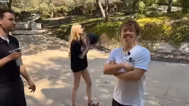 03:33:40Die Streamer führen die Zuschauer durch das Anwesen von OTK-Mitgliedern und zeigen verschiedene Bereiche wie die Pool-Area und eine Vielzahl von TVs. Dabei wird das Spiel "Noodle Slappe" vorgeschlagen: Ein Teilnehmer schlägt einen anderen mit einer Nudel, der daraufhin raten muss, wer es war. Dies erinnert an eine Schulzeit-Erfahrung und wird humorvoll als mögliche Subathon-Aktivität in Betracht gezogen. Die Tour endet mit dem Angebot, mehr von der Außenanlage zu zeigen.