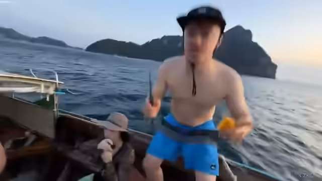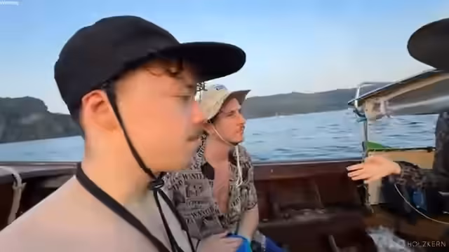 00:04:18Der Stream startet live von einer privaten Bootsfahrt in Thailand. Die Gruppe hat ein Boot für 4000 Baht gemietet und ist bereits seit zwei Stunden unterwegs. Das Internet ist auf den Nebeninseln nicht optimal, daher die anfänglichen Schwierigkeiten mit dem Stream. Die Gruppe ist auf dem Weg zur Monkey Beach und hat bereits andere Inseln wie Maya Beach besucht. Der Skipper des Bootes wird als cool beschrieben, obwohl die Kommunikation aufgrund von Sprachbarrieren manchmal schwierig ist. Es wird überlegt, ob man E-Zigaretten rauchen sollte, um den coolen Look des Skippers mit Zigarette nachzuahmen. Ronny berichtet von Rippenschmerzen, die er sich beim Boxen zugezogen hat, und einer Massage, die er sich gegönnt hat. Er erwähnt auch Bauchschmerzen und schwache Arme vom Tragen von Mangos zum Boot.