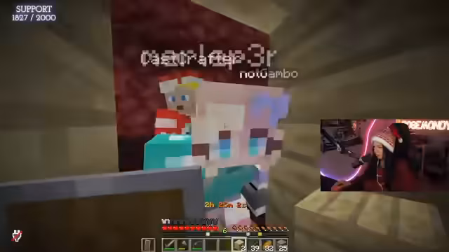 02:32:24Die Gruppe trifft im Wüstendorf ein und richtet sich für eine gemeinsame Runde der All Types of Damage Challenge ein. Zunächst geht es um das Sammeln von Holz, das notwendig ist, um mit den Dorfbewohnern zu handeln und Ausrüstung wie Bögen und Pfeile zu erstellen. Die Streamer sammeln Holz und teilen das gefundene Eisen untereinander auf, um Schilde herzustellen und sich für den bevorstehenden Nether-Besuch vorzubereiten. Die Herausforderung beginnt, da das Equipment noch sehr begrenzt ist.