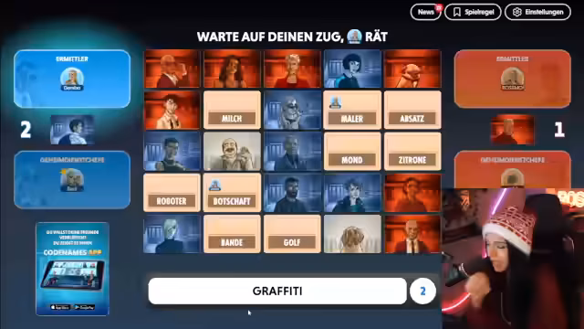 Codenames-Runde: Hypothesen und Fehlschläge