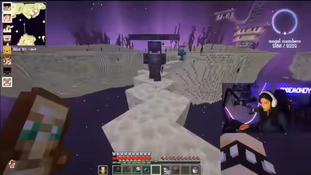 12:54:10Eine Wende ereignet sich durch ein katastrophales Teamsterben. Spieler wie Ali, Chad und Gigant stürzen in die Tiefe des Endes und verlieren dabei ihr gesamtes Inventar. Dies löst eine große Rettungsaktion aus, in der die verbleibenden Mitglieder versuchen, die gestorbenen Spieler mit gezielten Wasser-Portalen zu retten. Die Szene ist geprägt von Panik, Eile und Entsetzen, als eine nach der anderen die Koordinaten teilt und auf Rettung hofft. Die Rettung misslingt jedoch mehrmals, was zu hoffnungslosem Jammern führt.