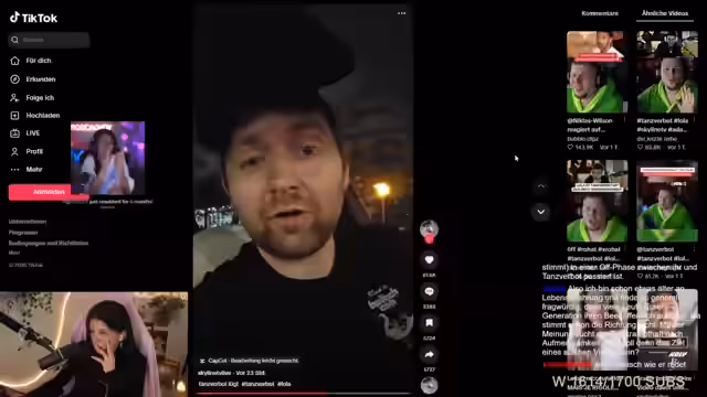 02:20:52Nach der Vorstellung von Tanzverbots Video beginnt eine Diskussion über die gegen ihn erhobenen Vorwürfe, insbesondere seine Ex-Partnerin. Die Streamerin betont, dass sie hier eine unparteiische Haltung einnimmt, da sie beide Personen nur als beruflich Bekannte sieht. Sie thematisiert auch die öffentliche Reaktion auf seine Schuldenprobleme und die daraus resultierende Mobbing-Erfahrung, was zeigt, dass sie die Gefühle von Influencern und den Umgang mit öffentlicher Kritik nachvollziehen kann.