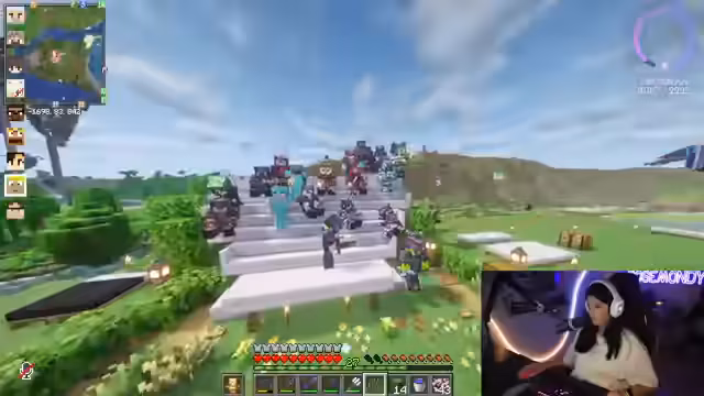 12:05:28Die Streamerin versucht, mit ihrem Dreizack hochzukommen und sich mit einem Wassereimer zu retten, was sie als "Mic Drop" bezeichnet, da sie es noch nie geschafft hat. Sie schafft es zweimal hintereinander und bezeichnet sich selbst als "lernaffin". Sergen kommt hinzu und sie sprechen über Hugos Bellen für Smaragde. Sergen bietet ihr ein Geschenk an und fragt, was sie sich wünscht. Sie wünscht sich Totems, da sie zwei hatte und einen verloren hat. Sergen überrascht sie, indem er ihr drei Totems schenkt und behauptet, die meisten Totems auf dem Server zu haben. Die Streamerin ist überrascht und bezeichnet Sergen als "gruselig", da er ihre Bedürfnisse zu erraten scheint. Sie spricht über ihre Pläne für die Katze und die Inneneinrichtung des Cat Cafés. Sie will ihre zukünftigen Pläne nicht verraten, um Stalker und Leute zu vermeiden, die ihre Handlungen davon abhängig machen. Sie kündigt an, dass Sam morgen zu ihr kommt und sie übermorgen ihre Schwester verheiratet. Sam wird ihre Familie kennenlernen, was die Streamerin als süß empfindet.