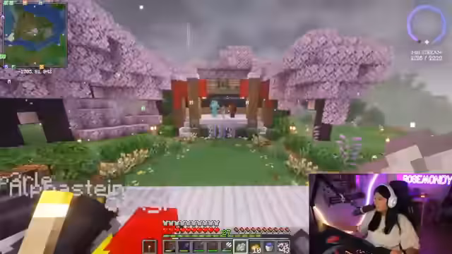 08:44:03Der Streamer präsentiert das fertiggestellte technische Gerät, eine anspruchsvolle Redstone-Maschine, für die er spezielle Blöcke wie Froglight und schwarze Wolle verwendet hat. Während der Demonstration wird humorvoll auf ein Schaf namens Hildegard Bezug genommen, das für den Bau der Maschine bewegt wurde. Die Präsentation endet mit einer Diskussion über den unverwechselbaren Look der Konstruktion, die durch die Anordnung von Blöcken und Teppichen einen einzigartigen Nebel-Effekt erzeugt.