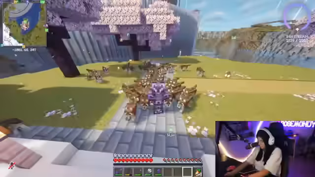 00:31:19Beim Betreten der Basis wurde der Streamer mit erheblichem baulichen Vandalismus konfrontiert. In ihrer Basis, insbesondere im Kellerbereich, waren unordentliche und schädigende Bauten wie pinkelnde Blöcke und Gras hinzugefügt worden. Obwohl der Streamer betonte, dass dies keine katastrophalen Schäden waren, nahm die Situation stark ihre Motivation, das Katzencafé fertigzustellen und ein schönes Event daraus zu machen, und weckte den Gedanken, den Standort zu wechseln.