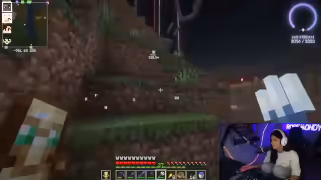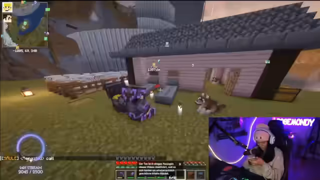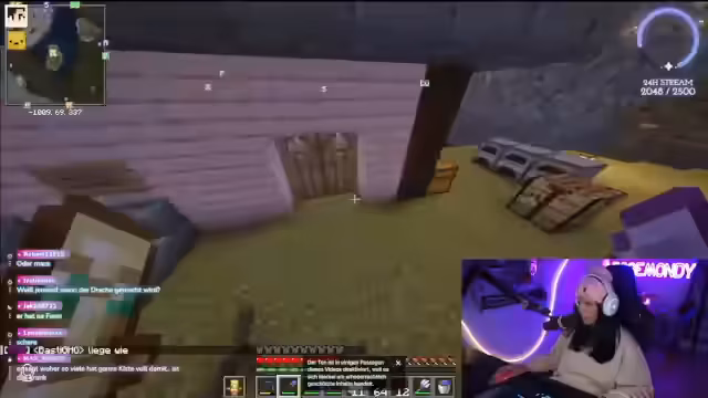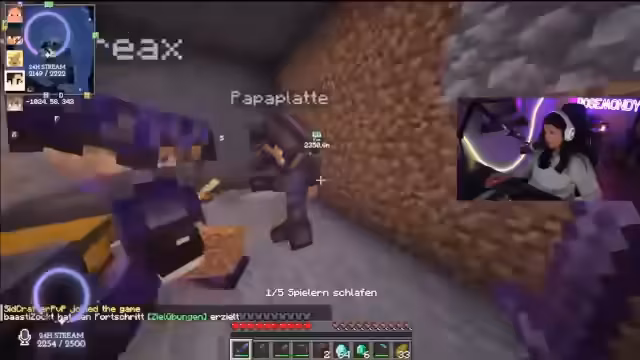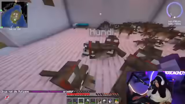 01:47:49Die Spielerin befindet sich in Minecraft und macht sich auf den Weg zu einem „Village-Land“, um „scharfe Katzen“ zu finden. Währenddessen äußert sie den Wunsch, keine Essensbestellung aufgeben zu müssen. Es kommt zu einer überraschenden Entdeckung, als ein zuvor als verloren geglaubter Hund namens Ravioli auf der Netherdecke gefunden wird. Die Freude über das Wiedersehen ist groß, und es wird überlegt, wie der Hund am besten aus dieser misslichen Lage befreit werden kann, eventuell mit einer Leine. Die Suche nach weiteren Hunden und deren Vermehrung scheint ein wiederkehrendes Thema zu sein, da die Spielerin eine „Hundearmee“ aufbauen möchte.