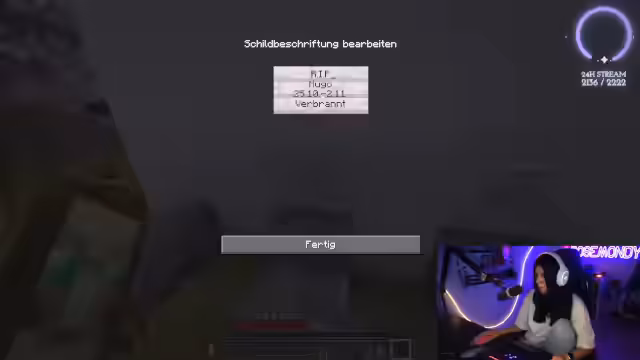 09:12:07Es werden humorvolle, aber auch traurige Geschichten über verlorene Minecraft-Haustiere erzählt. Hugo, Solo Watch und Ravioli werden als verstorben erwähnt, wobei Ravioli beim 'Mauerfall' und Hugo durch Verbrennung ums Leben kamen. Der Streamer erinnert sich auch an seinen eigenen Hund, der von einem anderen Spieler getötet wurde, und wie er stattdessen ein Kamel als Ersatz erhielt. Diese Anekdoten zeigen die emotionale Bindung der Spieler zu ihren virtuellen Begleitern und die oft unvorhersehbaren Ereignisse im Spiel. Die Spieler scherzen über die Ernsthaftigkeit dieser Verluste, was die lockere Atmosphäre des Streams unterstreicht.