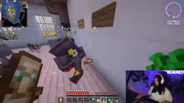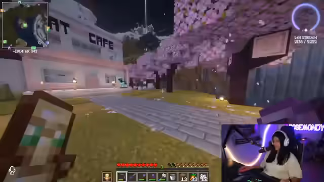 12:14:48Die Streamerin erlebt einen Stream-Absturz und muss ihren PC neu starten, was ihr öfter passiert. Sie vermutet, dass es am zu langen Streamen liegen könnte. Sie arbeitet weiter an ihrem Cat Café und muss einen Fehler im Design korrigieren, indem sie alles ein Stück nach rechts schiebt. Sie entdeckt, dass Basti und ein anderer Spieler Roleplay machen. Sie lüftet ihr Zimmer und stellt fest, dass sie die Erste auf dem Server war, die Full Netherite hatte, es aber wieder verloren hat. Sie diskutiert mit Sergen über die Augen und Pfoten der Katze im Cat Café, da diese in der Vorlage nicht richtig sichtbar sind. Sie überlegt, Tropfsteine für Krallen zu verwenden, aber das ist nicht möglich. Sie entscheidet sich für ein schielendes Auge, da sie es süßer findet. Sie wird angegriffen und muss sich verteidigen. Sie testet verschiedene Augenfarben und Materialien, um das perfekte Design für ihr Cat Café zu finden.