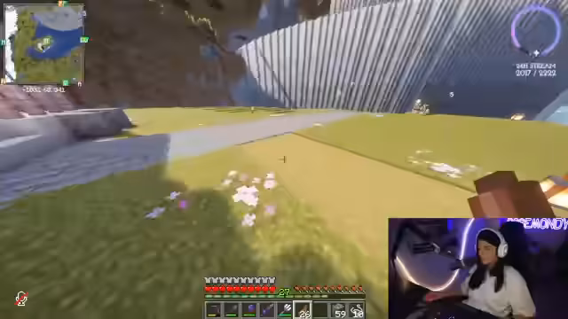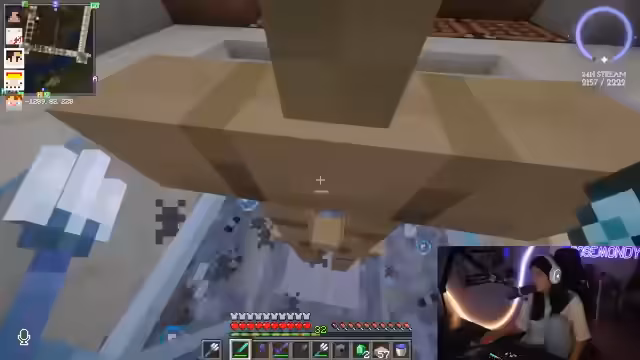 09:06:15Der Streamer entdeckt eine Trial Chamber und bemerkt die komplexe Infrastruktur des Servers, inklusive eines Baulagers und eines Industriegebiets mit verschiedenen Farmen und Lagern für Materialien wie Knochenmehl, Wolle, Glas, Sand und Holz. Die durchdachte Lagerung, beispielsweise Holz in Holzkisten und Sand in Sandlagern, wird positiv hervorgehoben. Es wird auch die Frage aufgeworfen, ob man einem anderen Spieler, Nick, beim Platzieren von Glas helfen soll, obwohl dies aufgrund des „Gamer-Stolzes“ der Spieler abgelehnt wird. Die Diskussion dreht sich um die Anzahl der platzierten Blöcke und die Eigenständigkeit der Spieler beim Bauen.
