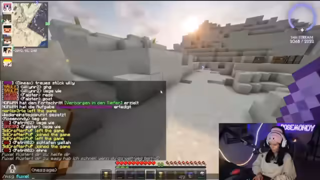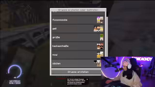 01:52:01Der Streamer bemerkt technische Probleme mit seiner Minecraft-Welt und Audio-Einstellungen. Währenddessen geht es um den verlorenen Hund Ravioli, der im Nether gefunden wird. Es gibt Diskussionen über dessen Rettung und die Bedenken des Streamers bezüglich der Haare und möglicher Verletzungen. Der Fokus liegt auf der Wiederherstellung des Spiels und dem emotionalen Umgang mit dem vermissten Haustier.