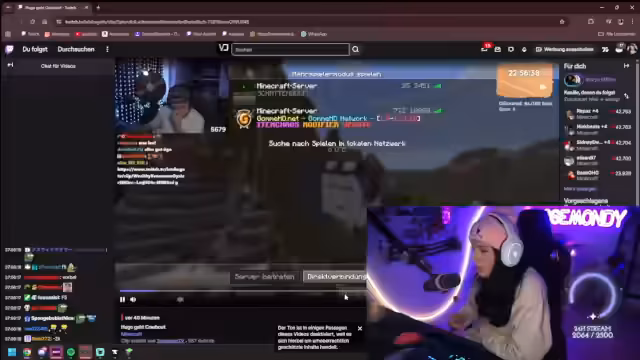 11:04:18Die Streamerin äußert sich begeistert über Crossover-Momente auf dem Server, insbesondere über eine unerwartete Begegnung zwischen Monte und Palle in einer Höhle. Sie fragt den Chat nach weiteren coolen, lustigen oder unerwarteten Crossover-Duos. Metashi wird als die Person genannt, die sie am meisten durch Crafter kennengelernt hat und von der sie zuvor nichts wusste, außer dass er WoW spielt und aus Löhne kommt. Sie beschreibt Metashi als unglaublich lustig. Es wird deutlich, dass solche Interaktionen und neuen Bekanntschaften einen großen Reiz des Servers ausmachen und für unterhaltsame Momente sorgen.