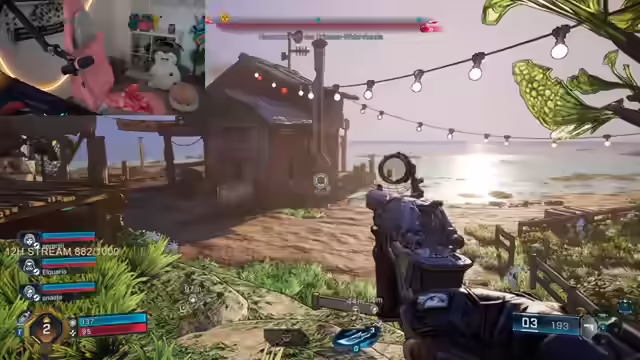 00:55:28Die Gruppe wird von Gegnern angegriffen und verteidigt sich. Ein Tier wird getötet, was zu Trauer führt. Es wird versucht, das Tier zu heilen, aber es ist nicht möglich. Die Gruppe entdeckt eine Hütte mit Herzen, kann diese aber nicht betreten. Sie setzen ihren Weg fort und entdecken ein Zeugloch. Ein Spieler benutzt seine Ulti, um Gegner zu besiegen. Es wird über die Grafik des Spiels diskutiert. Die Gruppe entdeckt eine Kugel am Himmel und wird von weiteren Gegnern angegriffen. Es kommt zu einem Massaker. Ein Spieler probiert seine Ulti aus und zeigt sie den anderen. Die Gruppe kämpft gegen weitere Gegner und befreit einen Schnitter. Ein Spieler testet eine Sniper. Es wird über einen Stream Restrat gesprochen. Die Gruppe nimmt eine Quest an und findet einen Schlüssel. Eine Cutscene wird ausgelöst. Ein Spieler holt sich Wasser und Red Bull. Es wird über den chaotischen Start des Streams gesprochen. Ein Spieler erklärt, warum der Online-Modus nicht funktioniert hat.