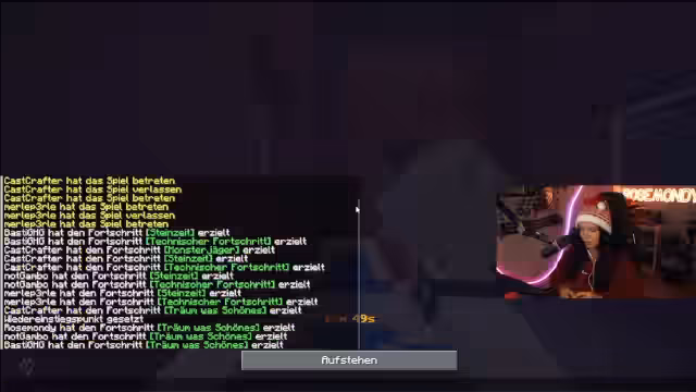 04:57:13Nach der Korea-Reise kehrte rosemondy in den Stream zurück und kündigte eine große Minecraft-Challenge an. Gemeinsam mit Heiko, Basti, Gambo und Merle planten sie, den Enderdrachen im 'Chaos-Modus' zu besiegen. Dabei gilt: Wenn ein Spieler stirbt oder Schaden nimmt, wird das gesamte Inventar aller Teilnehmer gelöscht – ein extrem hoher Schwierigkeitsgrad. Vor dem Start gab es technische Schwierigkeiten mit Mods und Serververbindungen, besonders bei Merle. Die Gruppe klärte Begriffe wie 'Mische' (ein vorinstallierter Mod-Set) und koordinierte die Einstellungen. Die Teilnehmer stimmten sich ab, um als Team zu funktionieren und die Herausforderung zu meistern, während sie auf die volle Gruppe warteten.