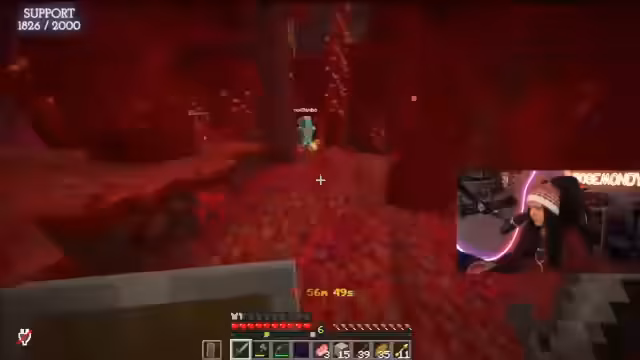 06:02:20Das Nether-Portal wird erfolgreich gebaut und betreten. Kurz darauf kommt es zu einem Vorfall: Durch Feuer, das versehentlich auf Magma-Blöcken platziert wurde, breitet sich Feuer aus und verursacht Schaden. Dies wird als 'Intrusive Thoughts'-Moment bezeichnet. Nach dem Vorfall diskutiert die Gruppe, schnell wieder ins Dorf zurückzukehren, um neu auszustatten, da das Inventar leer ist und die Nacht bevorsteht. Der Nether-Einstieg nach 43 Minuten wird als guter Fortschritt gewertet.