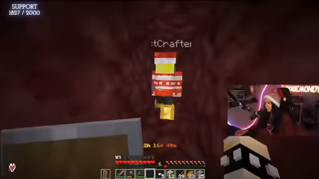 07:04:29Nach dem Nether-Einstieg spawnen sie in einem Crimson Forest ohne Goldrüstung. Sie finden Goldbarren und planen denDiebstahl von Goldblöcken aus einer nahegelegenen Treasure Bastion. Heiko leitet die Gruppe durch gefährliche Magma-Gebiete und organisiert den Goldabbau. Trotz Angriffen durch Piglins und Magma Cubes sichern sie wertvolle Ressourcen und diskutieren den risikoreichen unteren Part der Bastion.