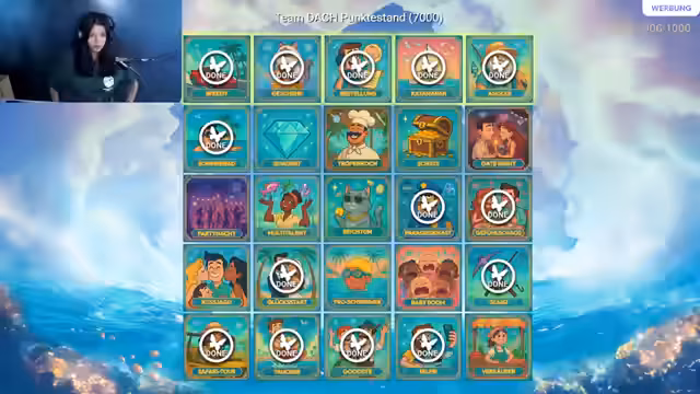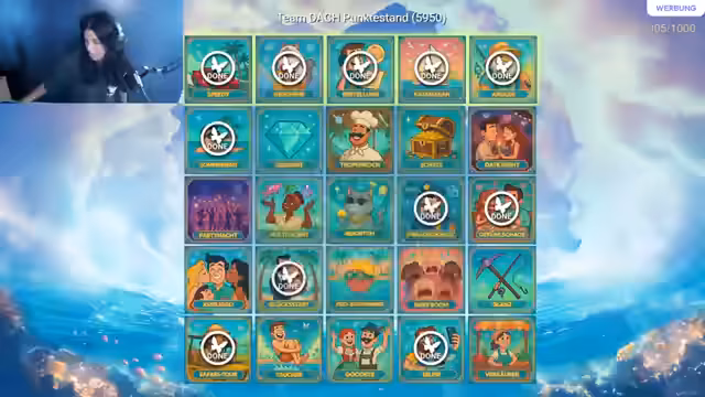 02:58:36Es wird Divi gelobt, die die Pause nicht genutzt und stattdessen große Punkte reingeholt hat. Es wird klargestellt, dass die Pause zur Erholung dient, da ein hartes Programm gefahren wird und so viel wie möglich freigeschaltet werden soll. Die Frage, wann das Quiz stattfindet, wird beantwortet: Es findet später statt, und es gibt noch zwei Stunden Zeit für die Challenges. Aris kann nun wieder ans Wasser gehen, da das Problem durch GeForce Now gelöst wurde. Es wird vermutet, dass das Problem am Treiber lag. Es wird betont, dass die Community nicht enttäuscht werden soll und noch Headsets freigeschaltet werden sollen. Es gibt zehn Headsets zu verlosen. Es wird eine Planung gemacht, wer welche Kachel bearbeitet. Edith möchte Date Night machen, während am Schwimmen gearbeitet wird. Es wird ein Marktstand aufgestellt und am Crafting gearbeitet. Das Ziel ist es, die Angel fertigzustellen und dann den quadratischen Edelstein herzustellen. Es wird gefragt, was noch offen ist, wie Pool springen, Partynacht und Reich werden. Es wird versucht, ein Date zu bekommen, was aber schwierig ist. Es wird gefragt, ob die Pause vorbei ist, was bestätigt wird. Edith wird für ihre anstrengenden Aufgaben in der Realität gelobt. Rose ist zurück und hat sich die Nase gepudert und ihre Familie kontaktiert. Sie zeigt kurz ihren Balkon im Urlaub. Es wird nach einer Challenge gefragt, und es wird der Schwimmkurs erwähnt. Edith wollte Radler noch etwas fragen wegen einer Challenge, die sie noch machen soll. Es wird erwähnt, dass neben der Rutsche noch zwei Pools mehr sind, in die man springen soll. Es wird gefragt, ob jemand einmal komplett um die Inseln geschwommen ist, was bejaht wird.
