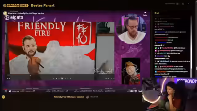 02:16:56Die Streamerin reflektiert über verschiedene „awkward moments“ aus den Clips und fragt die Zuschauer nach ihren Meinungen zu den unangenehmsten Situationen. Sie selbst empfindet einige Momente als „assi“ oder „Kopfschütteln“, insbesondere einen Clip, in dem eine Person andere verurteilt. Sie hebt hervor, dass jeder Clip auf seine eigene Art unangenehm ist. Im weiteren Verlauf des Streams wird ein „Bester Zuschauerinteraktion“-Clip gezeigt, in dem ein Zuschauer einen Code für einen ungewöhnlichen McDonald's-Burger teilt, der hauptsächlich aus Zwiebeln und Tomaten besteht. Die Streamerin findet dies lustig und fies zugleich. Ein weiterer Clip zeigt einen Anruf bei einer Mailbox, bei dem der Anrufer (der Vater der Streamerin) immer wieder hereinfällt, was als sehr humorvoll empfunden wird. Diese Interaktionen zeigen die Vielfalt der Inhalte und die enge Bindung zur Community.